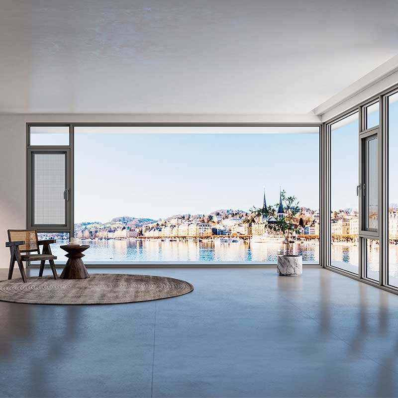 Τα κουφώματα και το φύλλο εσωτερικού και εξωτερικού χώρου είναι ομοιόμορφα, και το πλαίσιο και το φύλλο είναι στο ίδιο επίπεδο, χωρίς προεξέχοντα μέρη υλικού, κάνοντας ολόκληρο το παράθυρο πιο λείο και πιο όμορφο. Χρησιμοποιούνται μαλακές και σκληρές ενσωματωμένες λωρίδες αφρού υψηλής ταχύτητας EPDM για την εξασφάλιση αντοχής στις καιρικές συνθήκες και αντοχής στην οξείδωση. Οι διπλές λωρίδες στεγανοποίησης EPDM έχουν αντοχή στις καιρικές συνθήκες, καλή ελαστικότητα και αντοχή στην παραμόρφωση συμπίεσης. Τα παράθυρα είναι εξοπλισμένα με κοίλο γυαλί διπλής στρώσης ως στάνταρ, υψηλής ηχομόνωσης πρότυπο 5+20A+5, ή προαιρετικό τριπλό τζάμι διπλής κοιλότητας 5+6A+5+6A+5, πολλαπλή ηχομόνωση, απόδοση ηχομόνωσης περισσότερων από 40dB, παρέχοντας ένα ήσυχο εσωτερικό περιβάλλον.