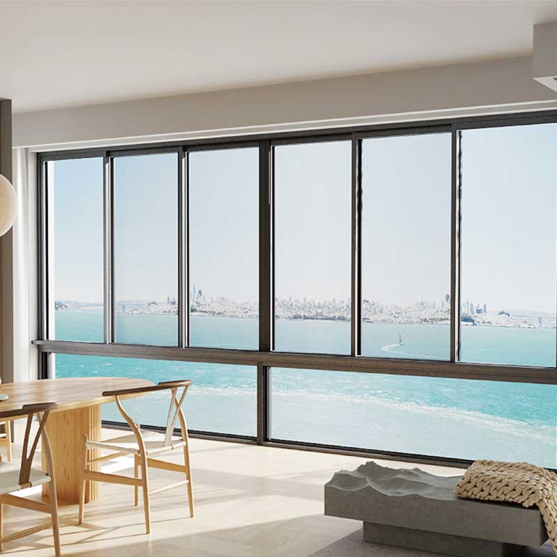 Το συρόμενο παράθυρο Haoya Aluminium Hao Yue195 της σειράς Aluminium 5 Track έχει δομή υψηλής αντοχής και απολαμβάνει ένα μεγάλο τοπίο.