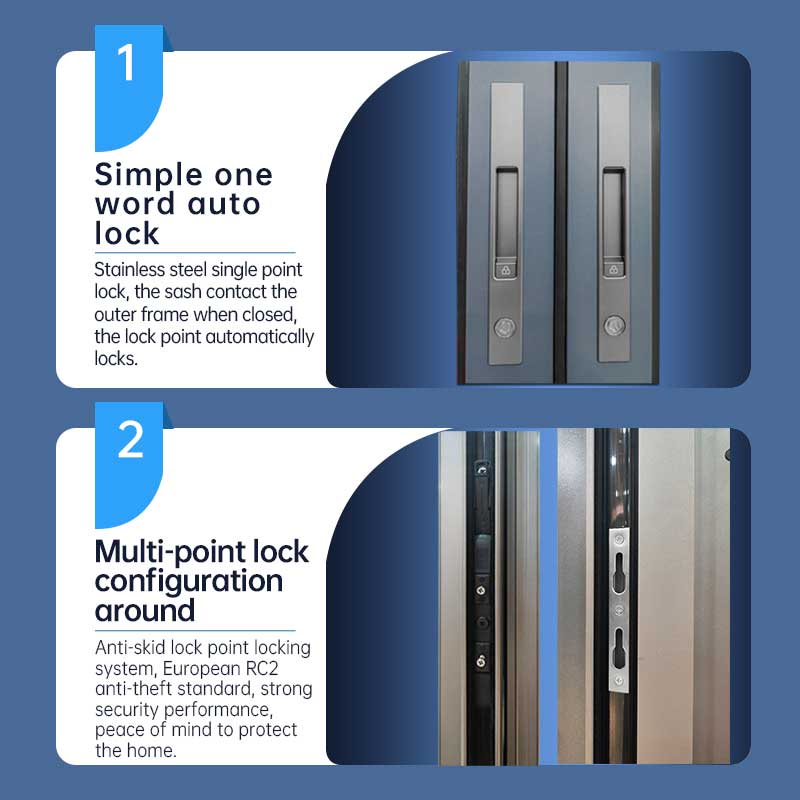 Το καινοτόμο σύστημα κλειδαριάς 5 σημείων με κλειδαριά αφής ενός σημείου από ανοξείδωτο χάλυβα ενισχύει την ασφάλεια, ενώ ο πυρήνας κλειδαριάς με προστασία για παιδιά προσθέτει ένα επιπλέον επίπεδο ασφάλειας. Η κλειδαριά μιας λέξης, εξοπλισμένη με κλειδαριές αφής ενός σημείου από ανοξείδωτο χάλυβα, δεσμεύεται αυτόματα όταν το παράθυρο είναι κλειστό, παρέχοντας έναν απλό και βολικό μηχανισμό κλειδώματος. Η σειρά Haoya Aluminium Hao Yue195 συνδυάζει τεχνολογία αιχμής, σχολαστική δεξιοτεχνία και δέσμευση για ασφάλεια, καθιστώντας την ιδανική επιλογή για τη δημιουργία ασφαλών, κομψών και άνετων χώρων διαβίωσης.