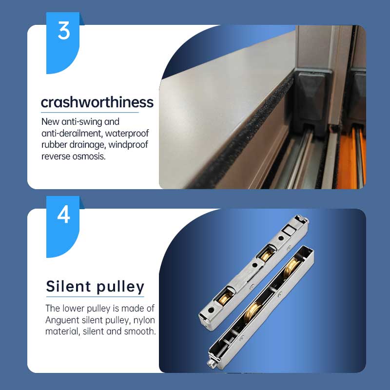 Ενσωματώνοντας ένα σχέδιο θερμοδιακοπτόμενου θαλάμου για ηχομόνωση, θερμομόνωση και ενεργειακή απόδοση, ο κατακόρυφος ισοθερμικός σχεδιασμός δημιουργεί ένα αποτελεσματικό θερμικό φράγμα, μειώνοντας τη συνολική κατανάλωση ενέργειας. Η προηγμένη στεγανοποίηση του παραθύρου περιλαμβάνει πλαίσιο 60 mm για την οθόνη, παρέχοντας μια κορυφαία και ευρύχωρη εμφάνιση. Τα βασικά χαρακτηριστικά περιλαμβάνουν υψηλή ηχομόνωση 5+14A+5, με χρήση μαύρης κοίλης λωρίδας αλουμινίου για αποτελεσματική ηχομόνωση με σκληρυμένο γυαλί διπλής στρώσης 3C πιστοποιημένο κατά της σύγκρουσης. Το πλέγμα από ανοξείδωτο χάλυβα 304 με πάχος 0,6 mm εξασφαλίζει ανθεκτικότητα και προηγμένες λειτουργίες όπως αντοχή στα κουνούπια και πρόληψη σκόνης.